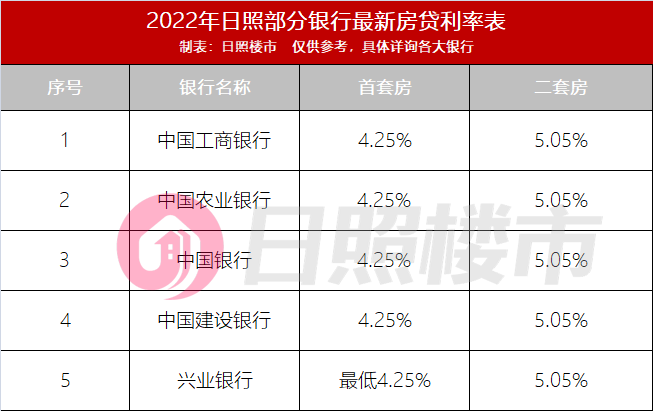 近期,日照主流银行的首套首贷利率在4.25%左右,房贷利率比较稳定。并且额度充足,放款时间较快。